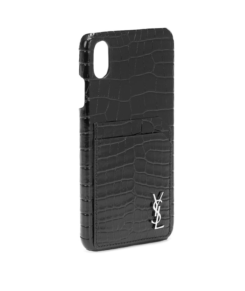 Coordinate your favorite YSL bag with this YSL case that comes adorned with the brand’s unmistakable initial logo. The croc-effect black leather adds visual interest, while the built-in card pockets make it easy to keep all you need in one place.