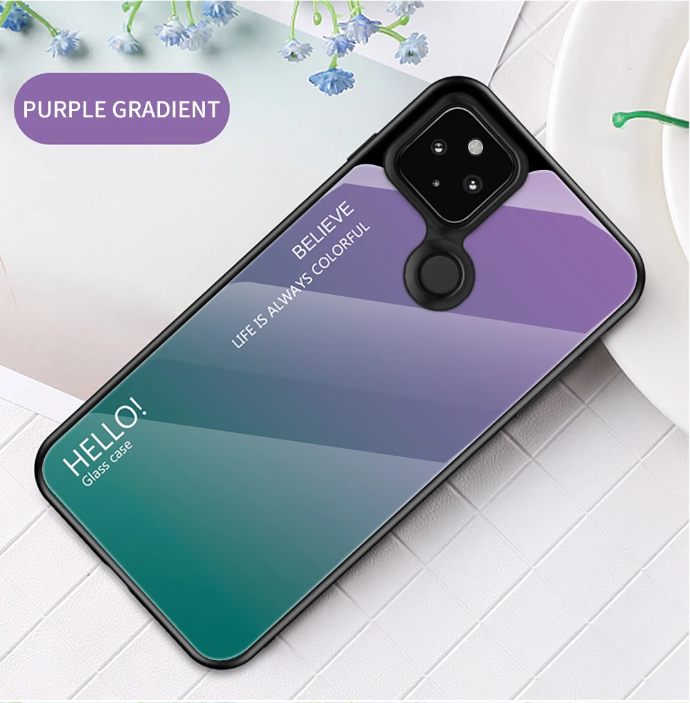 Drop Shipping Glass back Case for Google pixel 5XL Full protective Gradient Tempered Glass Phone Case for Nokia 9